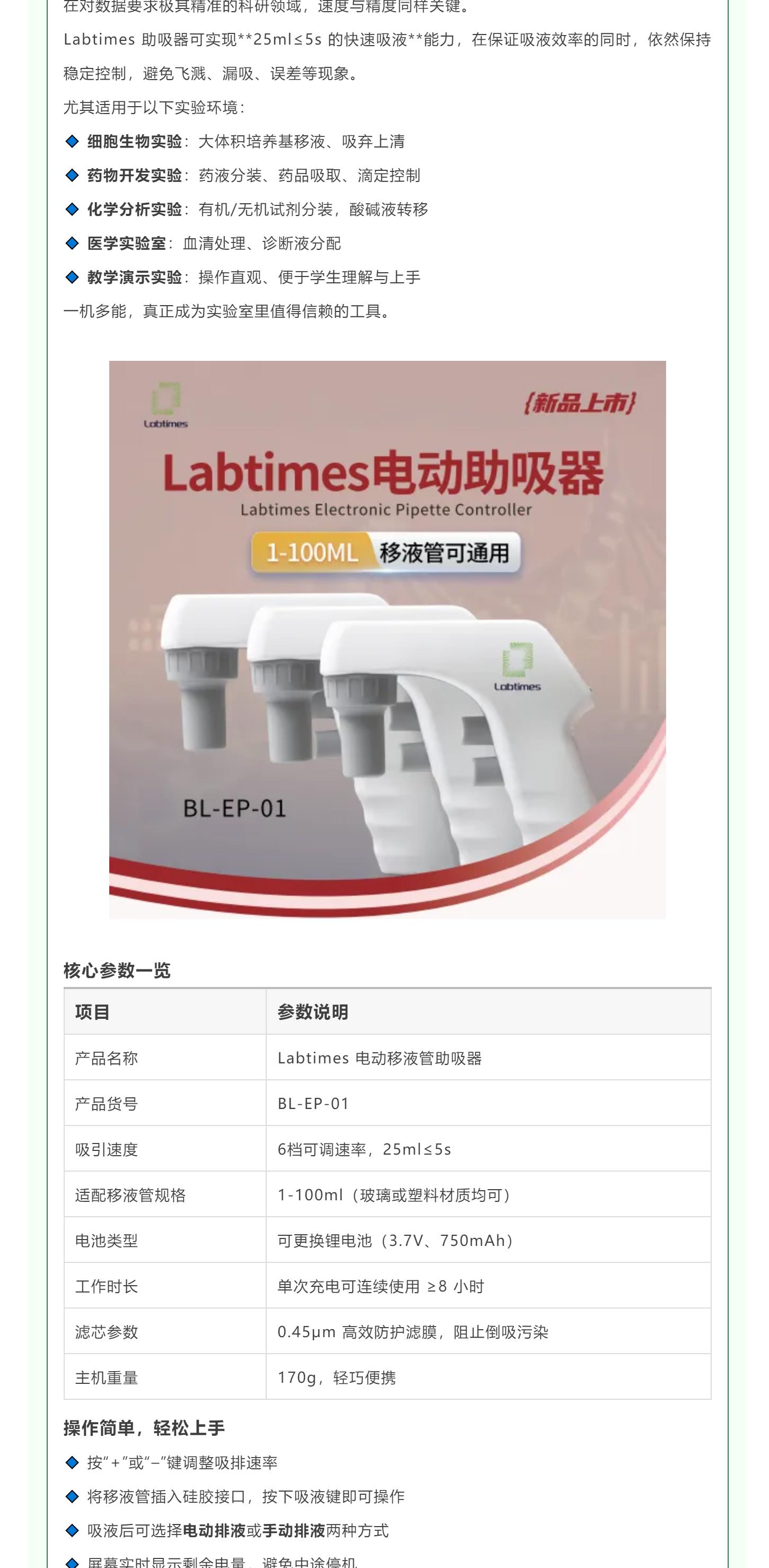 新品推荐|轻松移液,精准掌控 —— Labtimes 电动移液管助吸器正式上线!