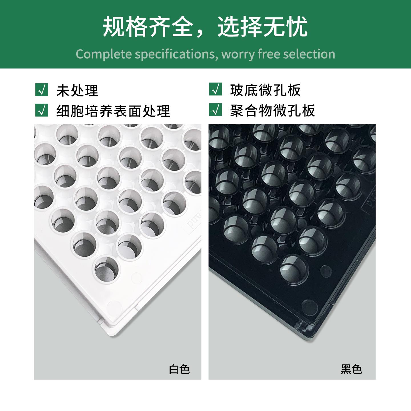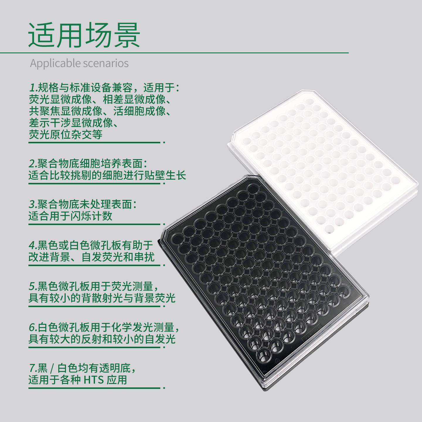 > 黑色微孔板用于荧光测量,具有较小的背散射光与背景荧光;