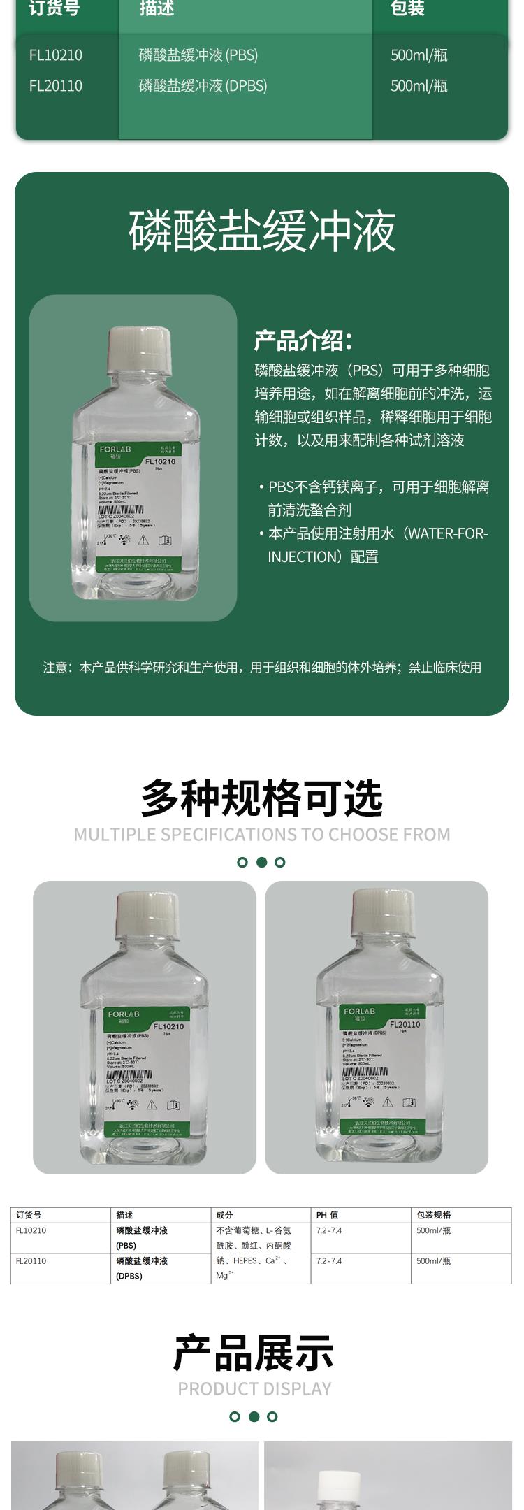 > 磷酸盐缓冲液(PBS)可用于多种细胞培养用途,如在解离细胞前的冲洗,