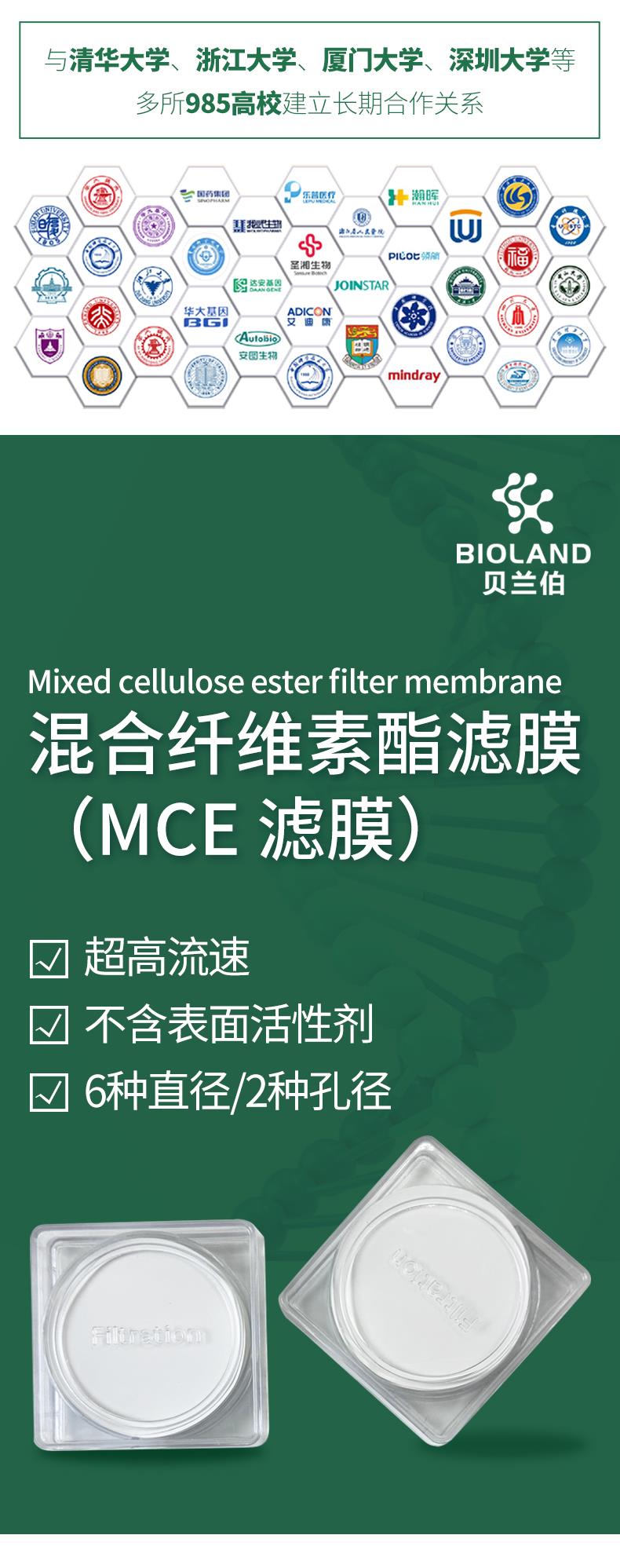 混合纤维素酯膜由硝酸纤维素 ( NC ) 和醋酸纤维素 ( CA ) 制成。较纯净的硝酸纤维素膜,混合纤维素膜具有更好的 平整性和均匀性,