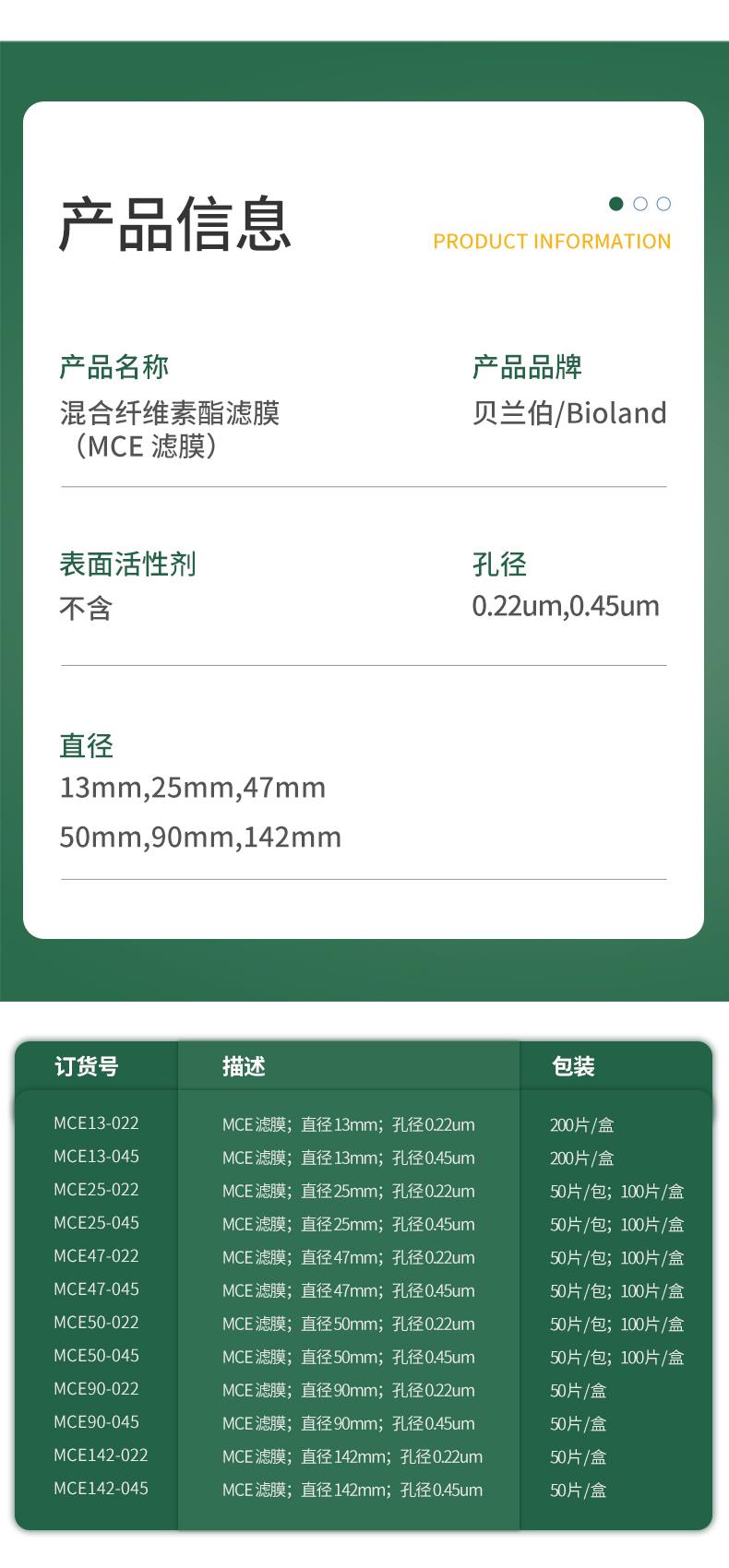 MCE50-045混合纤维素酯滤膜(MCE 滤膜)/亲水性50mm0.45um50 片 / 包;100 片 / 盒加入询价
