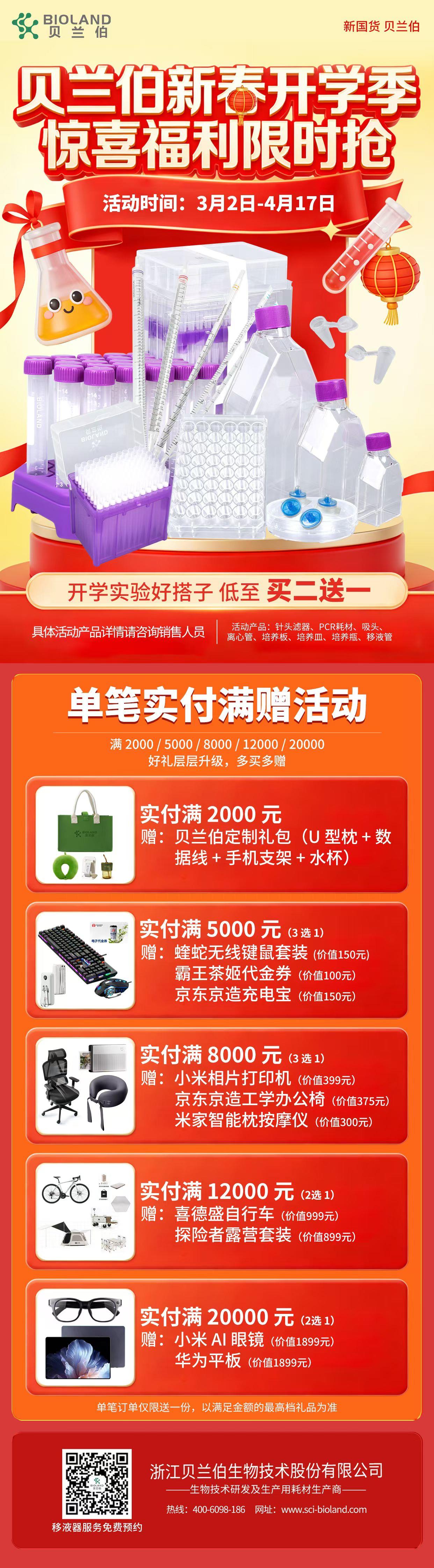 三月,是实验室最忙的开始。新项目启动、课题推进、论文冲刺、毕业实验…… 设备在运转,数据在积累,但实验能不能顺利推进,往往取决于一件事—— 耗材是否到位。 为助力新学期科研顺利开展,正式启动——新春开学季福利活动 新春开学季福利活动?? 活动时间:3月2日—4月17日 开学实验好搭子部分产品低至 买二送一同时叠加【单笔实付满赠】活动多买多送,层层升级!